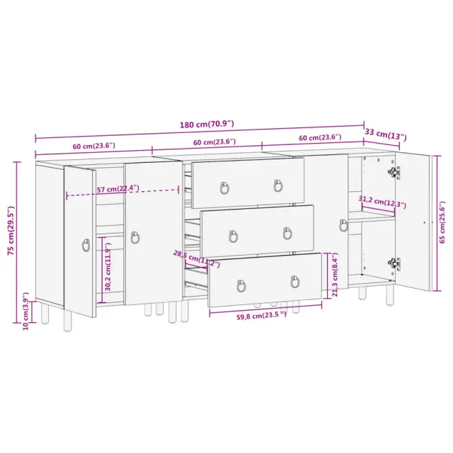 vidaXL Stranske omarice 3 kosi 60x33x75 cm trden mangov les