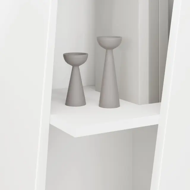 Ta moderna stranska polica je stilski kos, ki zadosti tako funkcionalnim kot estetskim potrebam. Odlično se zlije z dnevno sobo, spalnico ali kopalnico in nudi eleganten prostor za shranjevanje. Njena minimalistična oblika pomeni, da s preprostimi, a sodobnimi linijami skrbimo za brezhibno organizacijo vaših stvari. Njena gladka površina daje dodatno vizualno privlačnost in jo tako naredi za perfekten dodatek k vašemu domu.