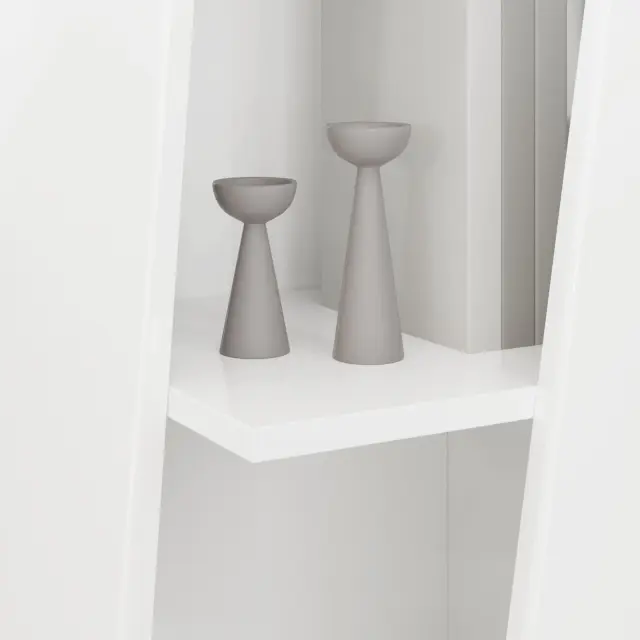 Ta moderna stranska polica je stilski kos, ki zadosti tako funkcionalnim kot estetskim potrebam. Odlično se zlije z dnevno sobo, spalnico ali kopalnico in nudi eleganten prostor za shranjevanje. Njena minimalistična oblika pomeni, da s preprostimi, a sodobnimi linijami skrbimo za brezhibno organizacijo vaših stvari. Njena gladka površina daje dodatno vizualno privlačnost in jo tako naredi za perfekten dodatek k vašemu domu.