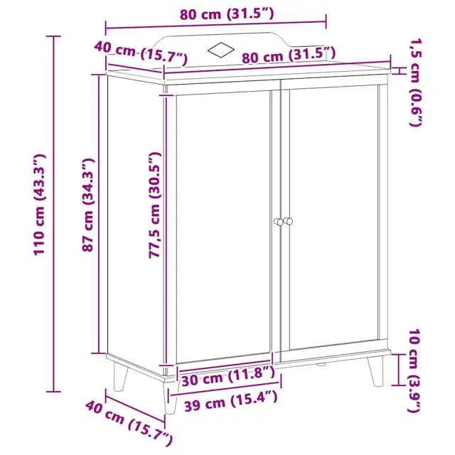 vidaXL Stranski predalnik s tablo Bela 80 x 40 x 110 cm