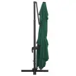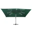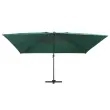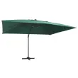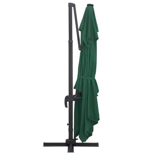Ta eleganten viseč senčnik je odličen za zagotavljanje sence in zaščite pred škodljivimi UV žarki. Senčnik je izdelan poliestra, ki ščiti pred UV žarki in ne bledi, zagotavlja pa optimalno zaščito pred soncem in preprosto čiščenje. Ima 24 LED lučk, ki se polnijo na solarno energijo ter samodejno osvetljujejo vaš zunanji bivalni prostor in ustvarjajo prijetno in romantično vzdušje po sončnem zahodu. Ima trdno križno osnovo za dodatno stabilnost. Naš vrtni senčnik se preprosto odpira in zapira z obračanjem gumba na drogu. Naklon senčnika se lahko prilagaja s potiskanjem in vlečenjem ročice gor in dol. Sredinski drog se lahko s pomočjo pedala vrti za 360 stopinj. Močan aluminijast drog s prašnim premazom, skupaj z 8 trpežnimi palicami, zagotavlja stabilnost in vzdržljivost senčnika. Izdelek je preprost za sestavo. Prosimo, upoštevajte, da priporočamo zaščito tkanine strehe z vodoodpornim sprejem, če je izpostavljena močnemu deževju. Izdelek ima priključek USB, vendar certificiran vir napajanja 5V USB ni priložen.Barva senčne ponjave: ZelenaMaterial: Blago s PA oblogo, aluminij s prašnim premazomCelotne dimenzije: 400 x 300 x 268 cm (D x Š x V)Velikost križne osnove: 100 x 100 cm (D x Š)Velikost droga: 7 x 5 cm (D x Š)S 24 LED lučkami in solarno ploščoZ odprtino za pretok zraka in sistemom za odpiranje s pomočjo ročiceDizajn za nastavitev naklona in vrtenje za 360 stopinjVključuje 8 aluminijastih palicPotrebno sestavljanje: Da 47005