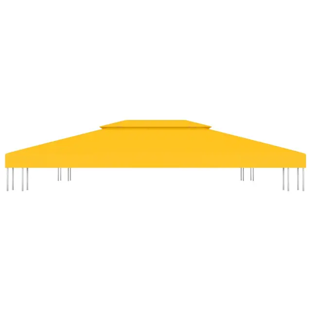 Uživajte v svojem zunanjem prostoru s to 2-delno streho za paviljon ne glede na sonce ali dež! Nadomestna streha je narejena iz vzdržljivega blaga iz poliestra s PVC oblogo, ki zagotavlja vodoodpornost. Streha za paviljon bo nudila zaščito pred soncem, dežjem in drugimi slabimi vremenskimi razmerami. To senčilo ima ojačane vogale za boljšo vzdržljivost. Priloženi so tudi kavlji in zanke za lažjo namestitev in pritrditev strehe na okvir paviljona. Prosimo upoštevajte, da okvir za paviljon ni vključen v dostavo.Barva: RumenaMaterial: Blago (100 % poliester)Celotna velikost: 4 x 3 m (D x Š)Velikost zgornje plasti: 179 x 82 cm (D x Š)Teža blaga: 310 g/m²S PVC oblogo (vodoodporno)Paket vsebuje:1 x Streha za paviljon16 x Kavelj in zanka za pripenjanje 312076