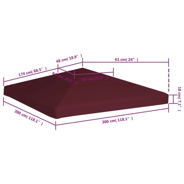 vidaXL Streha za paviljon 310 g/m² 3x3 m bordo