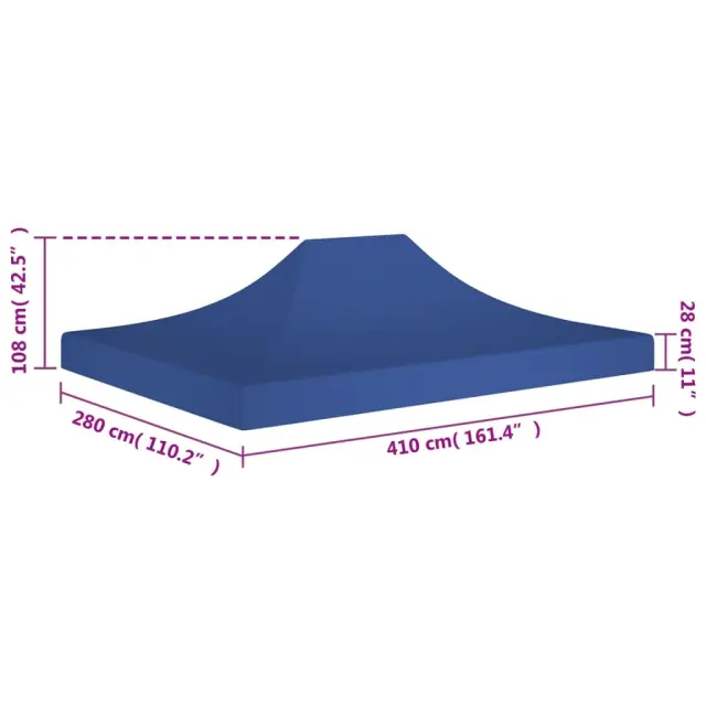 Naša streha za vrtni šotor je idealna zamenjava za streho vašega zložljivega šotora. Streho za vrtni šotor se hitro in preprosto namesti na okvir. Streha za šotor je izdelana iz UV in vremensko odpornega oksforda s PVC oblogo, zato je ta streha odlična za uporabo na prostem. Prosimo, upoštevajte, da paket vsebuje le streho za vrtni šotor; okvir za šotor ni priložen.Barva: ModraMaterial: 600D oksford s PVC oblogo (100 % poliester)Velikost: 410 x 280 cm (D x Š)Odporno na UV žarke in vodoIdealno nadomestilo za zložljivo pop-up streho za šotorOpomba: Samo streha vrtnega šotora, okvir ni priložen 315350