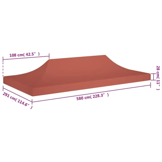 Naša streha za vrtni šotor je idealna zamenjava za streho vašega zložljivega šotora. Streho za vrtni šotor se hitro in preprosto namesti na okvir. Streha za šotor je izdelana iz UV in vremensko odpornega oksforda s PVC oblogo, zato je ta streha odlična za uporabo na prostem. Prosimo, upoštevajte, da paket vsebuje le streho za vrtni šotor; okvir za šotor ni priložen.Barva: TerakotaMaterial: 600D oksford s PVC oblogo (100 % poliester)Velikost: 580 x 291 cm (D x Š)Odporno na UV žarke in vodoIdealno nadomestilo za zložljivo pop-up streho za šotorOpomba: Samo streha vrtnega šotora, okvir ni priložen 315333