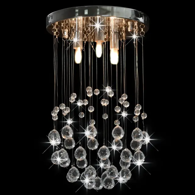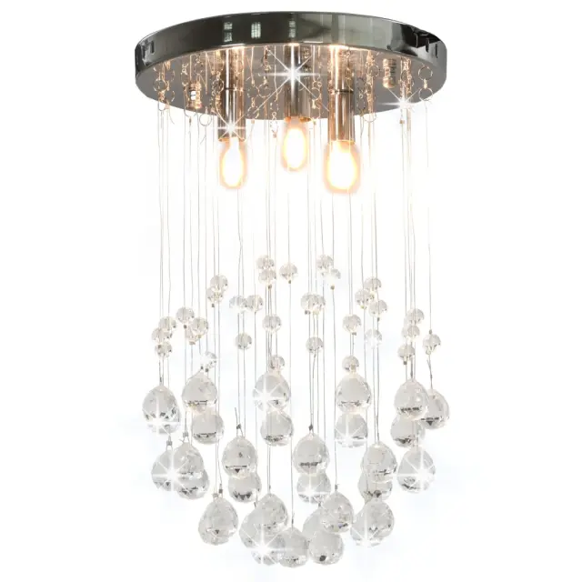vidaXL Stropna svetilka s kristalnimi kroglicami srebrna okrogla 3xG9