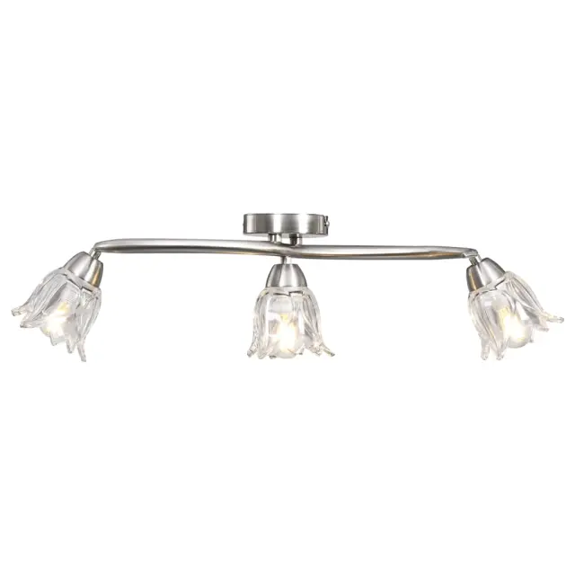 To svetilko lahko enostavno namestite na kateri koli strop, saj ima vzdržljiv kovinski podstavek. Tri prepletene kromirane cevi in prozorni stekleni senčniki v obliki tulipana prispevajo k elegantnemu videzu. Kromiran satenast premaz svetilki dodaja sodoben stil, zato je popolna za dnevne sobe ali spalnice v katerem koli stilu. Je tudi preprosta za vzdrževanje in čiščenje z vlažno krpo.