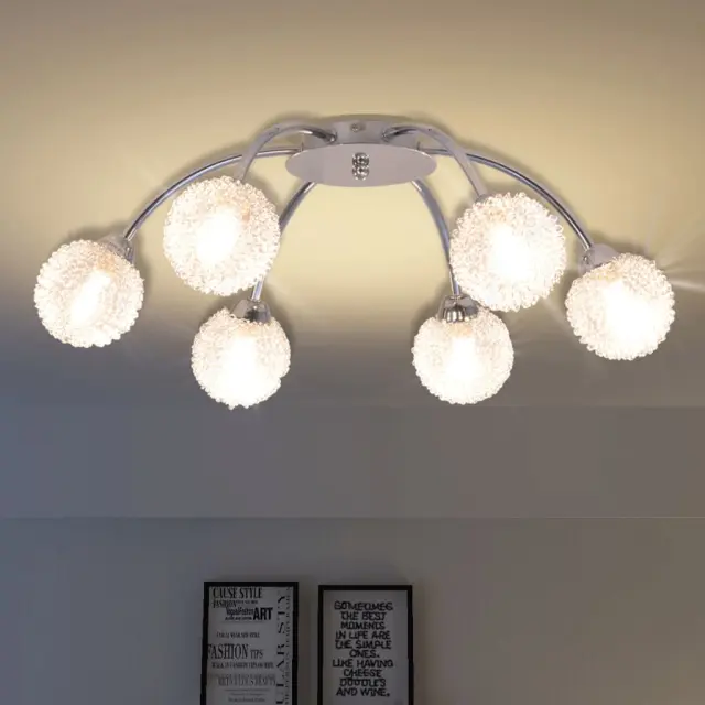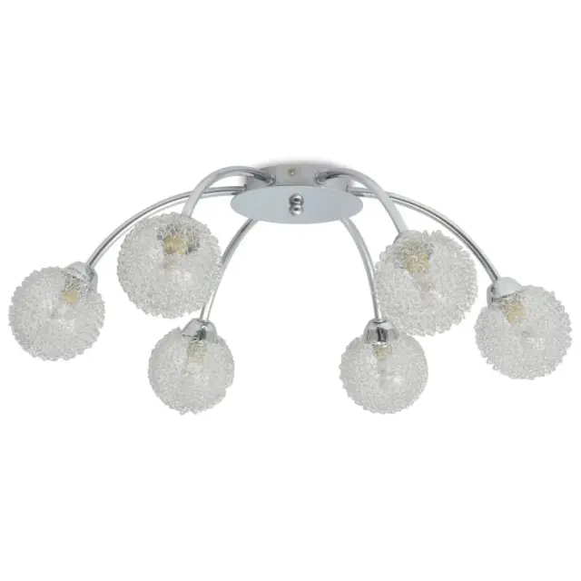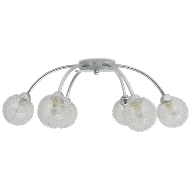 LED svetilka je preprosta za namestitev na vsak strop, saj ima visokokakovostno kovinsko osnovo. Šest ukrivljenih cevi ji daje prefinjen videz. Delikatno steklo bo zagotovilo pretok prijetne toplo bele svetlobe, zato bo svetilka osvetlila vsak kot prostora. Svetleča mrežasta žica dopolnjuje senčnike in odbija svetlobo, da le ta izgleda svetlejša. Ta posebna stropna svetilka bo odlično izgledala v vsakem prostoru v hiši.