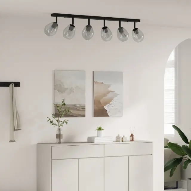 Ta stropna svetilka združuje moderno zasnovo z uporabnostjo in je super dodatek v prostora, kot sta dnevna soba ali hodnik. S svojo pravokotno obliko in mat črnim finišem se lepo prilega različnim dekorjem ter ponuja učinkovito osvetlitev za različne naloge.