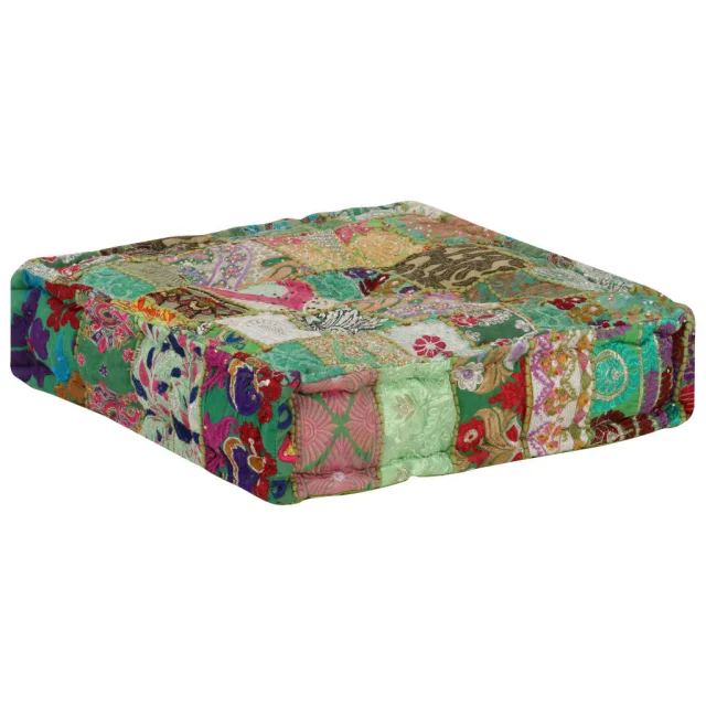 vidaXL Tabure večbarven kvadraten bombaž ročno delo 50x50x12 cm zelen