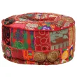 vidaXL Tabure večbarven okrogel, bombaž, ročno izdelan 40x20 cm rdeč