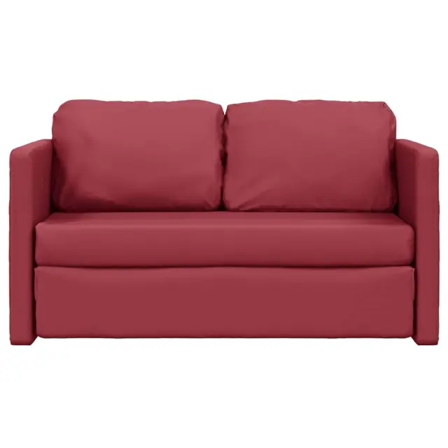 vidaXL Talni raztegljiv kavč 2 v 1 vinsko rdeč 112x174x55 cm um. usnje