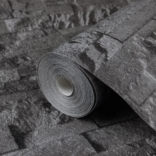 vidaXL Tapeta 3D kamnit videz črna 10x0,53 m netkana