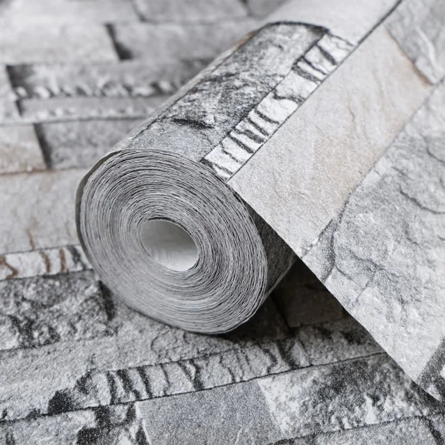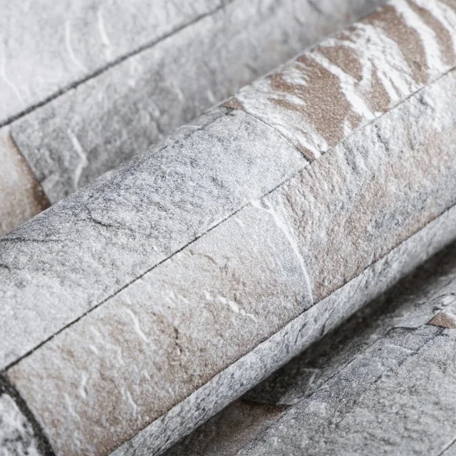 vidaXL Tapeta 3D kamnit videz siva in rjava 10x0,53 m netkana