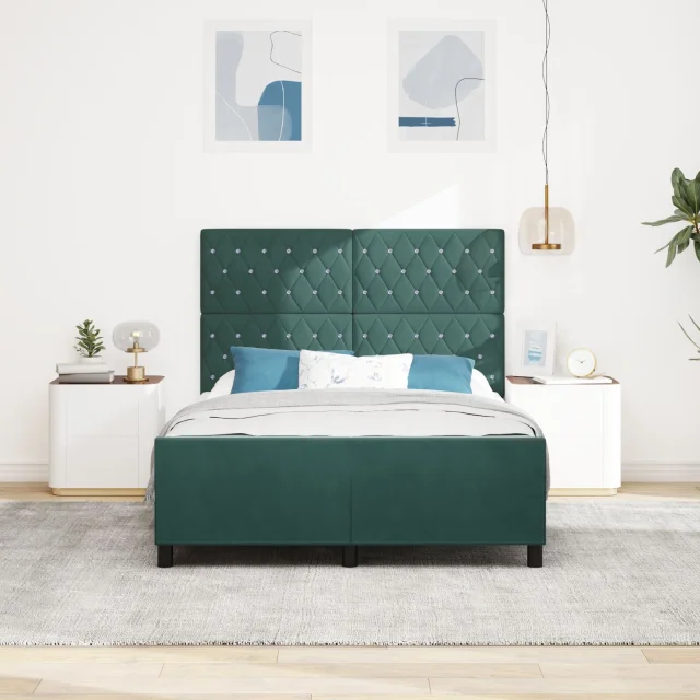 vidaXL Temno zelena žametna postelja 140x200 cm
