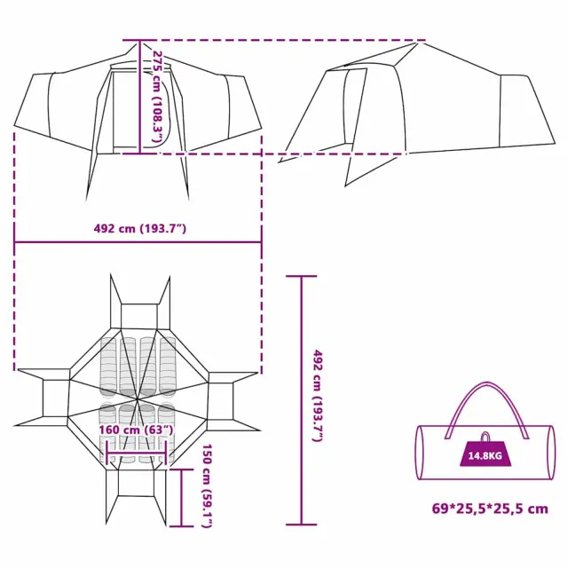 Tipi šotor za kampiranje je odlična kombinacija stila, funkcionalnosti in trajnosti, kar ga dela popolno izbiro za ljubitelje narave, ki iščejo vsestransko kampirno rešitev. S prijetnim občutkom in modernim izgledom, ki vključuje čiste linije ter minimalno zmedo, ta Tipi šotor vabi k uživanju v naravi, ne da bi morali žrtvovati udobje. Njegova prostorna notranjost nudi dovolj prostora za družinsko ali skupinsko kampiranje, kar ustvarja prijetno vzdušje in te ščiti pred vremenskimi vplivi. Vodoodporna in UV-odporna tkanina te varuje in obljublja neskončne noči pod zvezdami. Je tudi prenosljiv in omogoča hitro potovanje do skritih kotičkov ali mirnih kampirnih točk. Ne glede na to, ali odkrivaš nove poti ali se samo vračaš naravi, ta šotor te podpira.