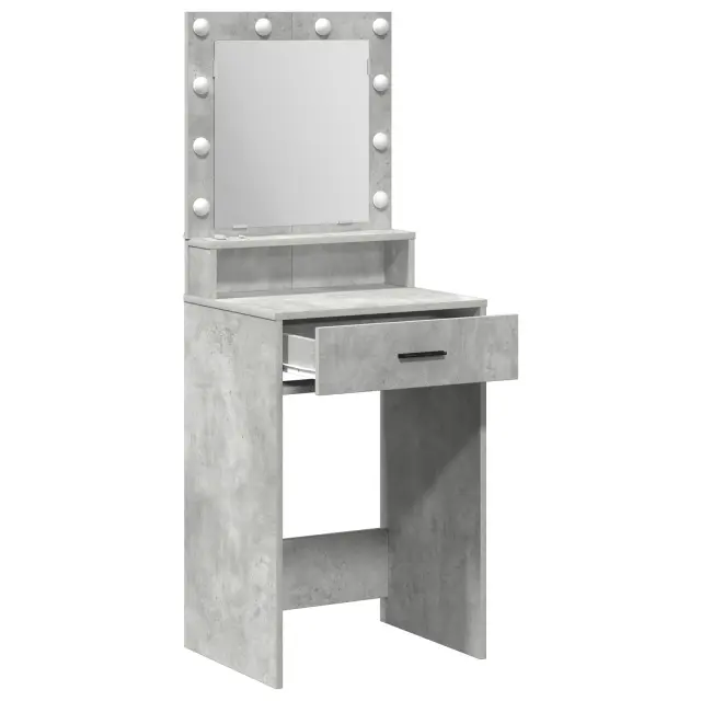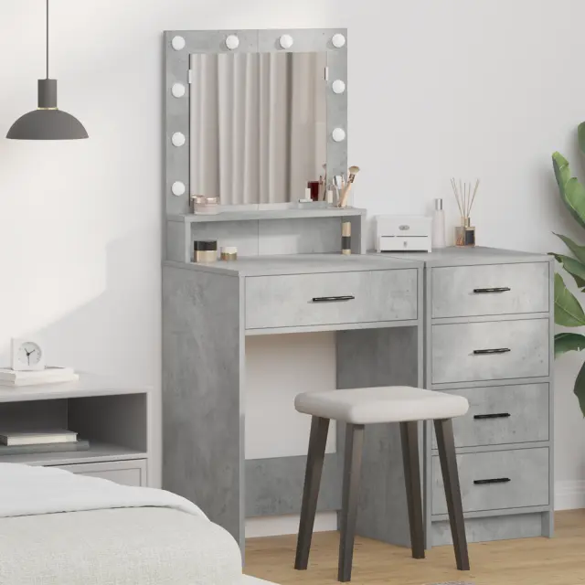 Ta set modernih betonskih Sivih toaletnih mizic se osredotoča na stil in funkcionalnost - perfekten za osebno nego in ličenje. Njegova elegantna zasnova se super ujema s sodobnim dekorjem spalnice, kar tvojemu prostoru doda karizmo in hkrati zagotavlja osnovno funkcionalnost.