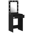 Ta toaletna miza združuje praktičnost in modern slog, kar jo dela nujno potrebno za vsako spalnico. Izdelana je iz trdnega hrasta in MDF-ja, njena mat črna površina lepše izgleda in se ujema s sodobnim dekorjem. Ponuja ti posebno mesto za ličila in urejanje.