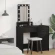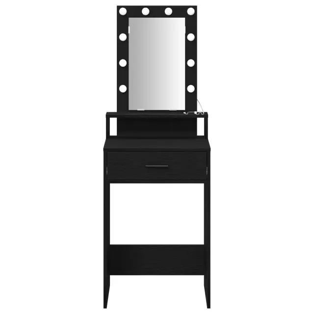 Ta moderna toaletna miza združuje sodoben stil z pametnim dizajnom. Odlično je narejena za vsako spalnico ali prostor za nego. Z osupljivim črnim hrastovim zaključkom izgleda super in je zelo uporabna za vse vaše lepotne potrebe.