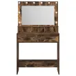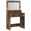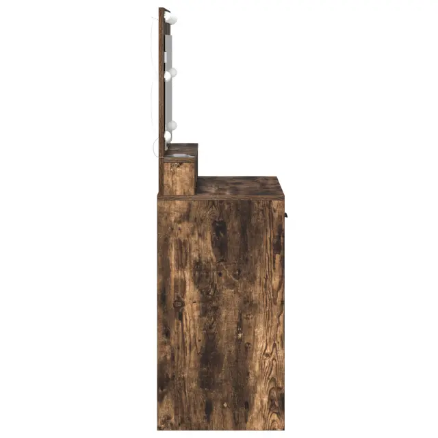 Ta dimljena hrastova kozmetična enota z ogledalom s svetlobo je pametna izbira za vse tvoje potrebe po ličenju in urejanju. Njen eleganten dizajn, izdelan iz trdega hrasta, se super poda v tvoji spalnici. Uskladi se s sodobnim decorjem in ti omogoča priročen prostor za vsakodnevno lepotno rutino.