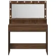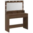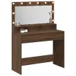Ta moderna toaletna miza z vgrajenim ogledalom in lučko ti poenostavi pripravo v vsaki spalnici. S svojo toplo rjavhrastovo končno obdelavo, čistimi linijami in gladko teksturo je prak-tična izbira za vsakodnevno ličenje in nego.
