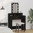 Ta elegantna toaletna miza z ogledalom ni le funkcionalna, ampak tudi popestri tvoj prostor. Njena gladka črna hrastova površina doda pridih sofisticiranosti in je idealna za vse, ki želijo osvežiti dekoracijo svoje spalnice z mestom za ličila in ličenje.