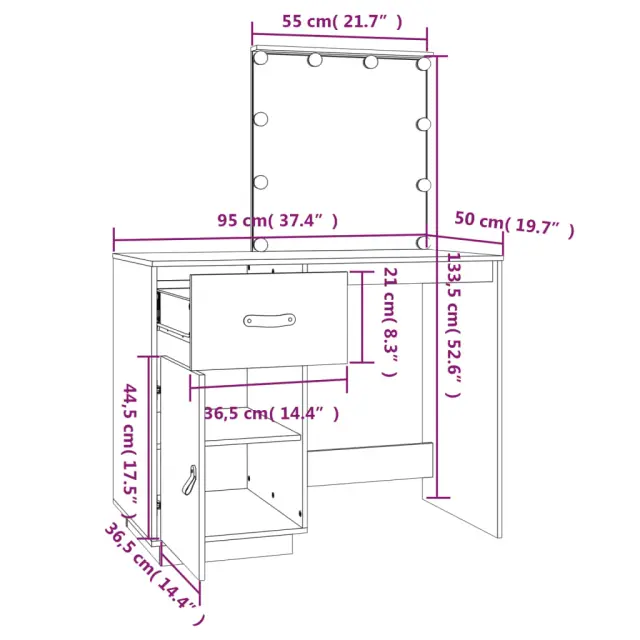 vidaXL Toaletna mizica LED 95x50x133,5 cm trdna borovina