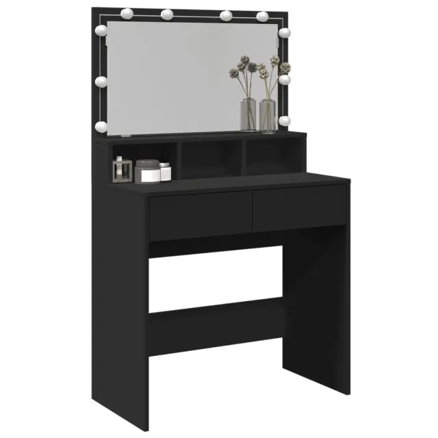 vidaXL Toaletna mizica z LED lučkami črna 80x41x134,5 cm