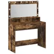 Ta moderna toaletna miza iz prekajenega lesa je kombinacija sloga in funkcionalnosti. Ima lepo pravokotno obliko, veliko ogledalo in dobro postavljene luči, kar jo dela čudovit dodatek k vsakemu spalničnemu dekorju. Super je za vse, ki so navdušeni nad nego, saj dvigne tvoje vsakdanje rutine.
