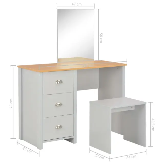 vidaXL Toaletna mizica z ogledalom in stolčkom siva 104x45x131 cm
