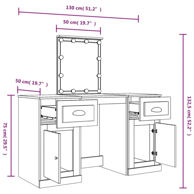vidaXL Toaletna mizica z LED lučkami dimljen hrast 130x50x132,5 cm
