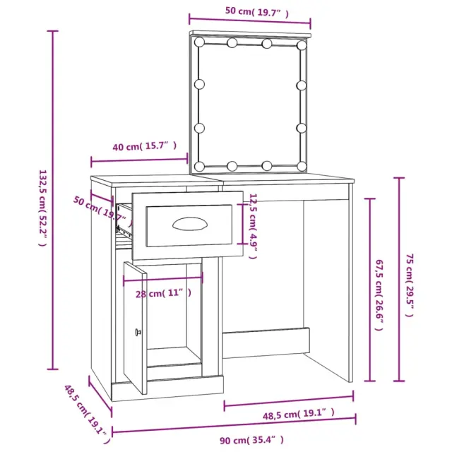 vidaXL Toaletna mizica z LED lučmi črna 90x50x132,5 cm inženirski les