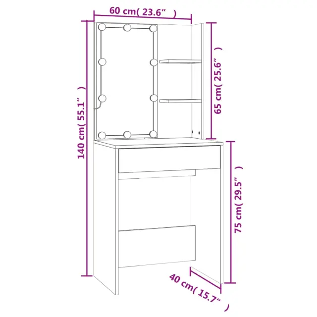vidaXL Toaletna mizica z LED lučkami bela 60x40x140 cm