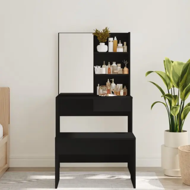vidaXL Toaletna mizica z ogledalom črna 74,5x40x141 cm