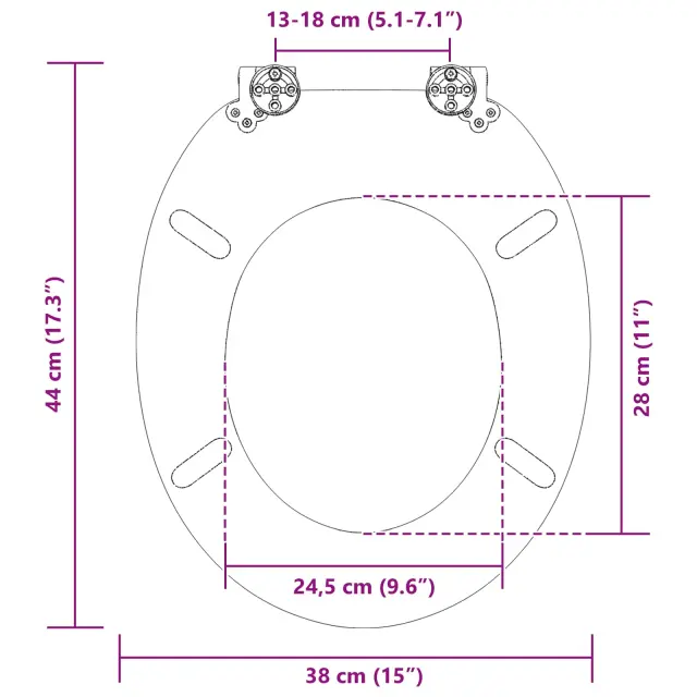 • Standardna pritrditev Namestitveni proces je preprost, saj ta pokrov ustreza širokemu spektru modelov stranišč, kar imamo v mislih pri razdaljah med montažnimi luknjami. Z preprosto sestavo ga lahko namesti kdorkoli, kar prihrani čas in eliminates potrebo po strokovni pomoči.