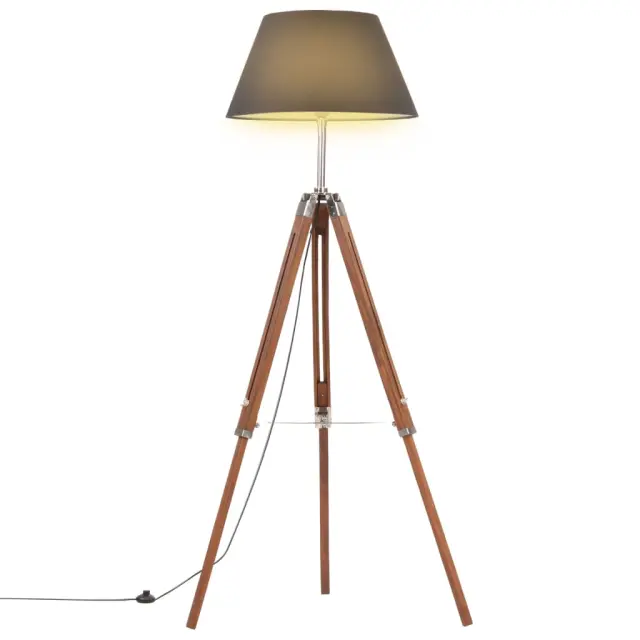 vidaXL Trinožna stoječa svetilka medeno rjava in črna tikovina 141 cm