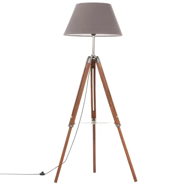 vidaXL Trinožna stoječa svetilka medeno rjava in siva tikovina 141 cm