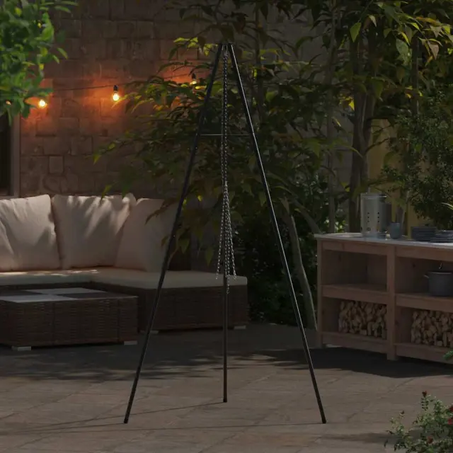• Vključene komponente Opremljen z robustnim črnim okvirjem, ta tripod ponuja stabilnost za varno kuhanje na prostem. Njegova funkcionalna zasnova je prilagojena za podporo loncem nad odprtimi ognji, kar je ključno za kampiranje ali vrtnarske pike. Vsaka komponenta je zasnovana za udobje uporabnika.