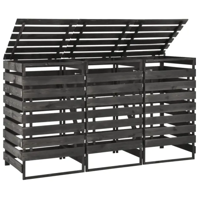 vidaXL Trojna lopa za smetnjake 210x75x121 cm barvana trdna borovina