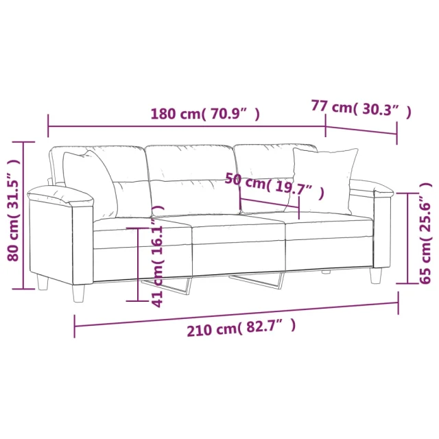 vidaXL Trosed z blazinami črn 180 cm tkanina iz mikrovlaken