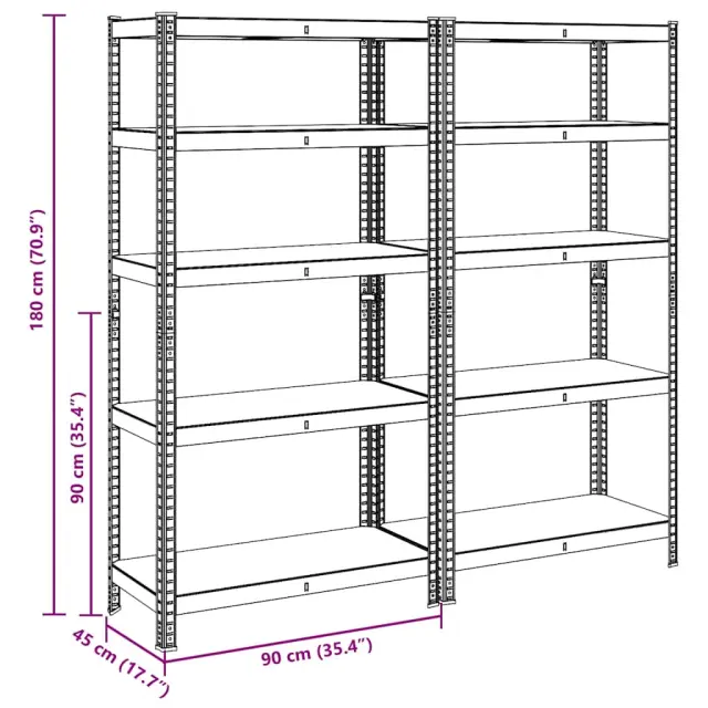 vidaXL Trpežen regal 5-nadstropni 2 kosa srebrno jeklo in inž. les