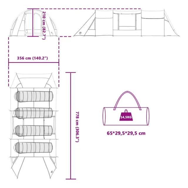 vidaXL Tunelski šotor s streho Siva in oranžna 778 x 356 x 210 cm