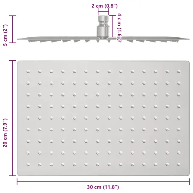 vidaXL Tuš glava nerjaveče jeklo 304 30x20 cm pravokotna