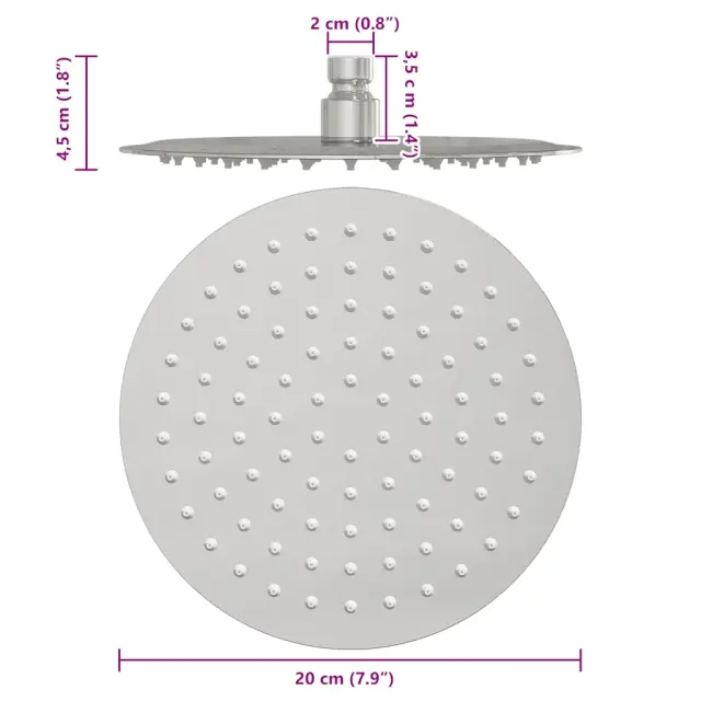 vidaXL Tuš glava nerjaveče jeklo 304 20 cm okrogla