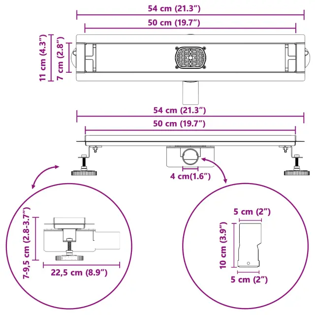 vidaXL Tuš odtok 2-v-1 z 360° sifonom srebrna 50 cm