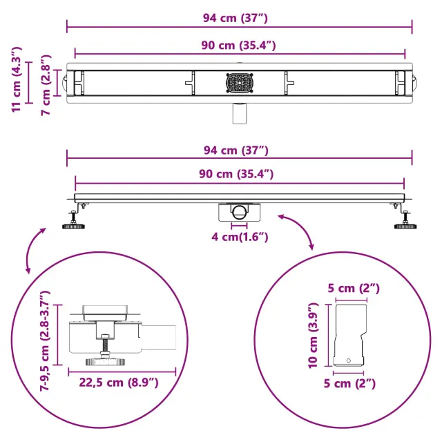 vidaXL Tuš odtok 2-v-1 z 360° sifonom srebrna 90 cm