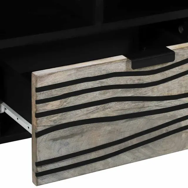 Ta lesena TV enota ponuja mešanico elegantnega sodobnega oblikovanja in funkcionalnosti, kar jo naredi idealno za sodobne dnevne sobe. Njena pravokotna oblika in črna barva prinašata šik, a enostaven pridih, ki izboljša dekor dnevnega prostora. Z inženirskim lesom kot glavnim materialom je TV enota trdna in vzdržljiva, kar pomeni, da lahko ostane v vašem bivalnem prostoru dolgo časa. Enota nudi stilno središče, ki dopolnjuje estetski videz prostora, obenem pa zagotavlja tudi praktične možnosti shranjevanja za vaše zabavne naprave.