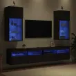 vidaXL TV omare za montažo na steno z LED lučmi 2 pcs Črna Orehovina