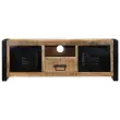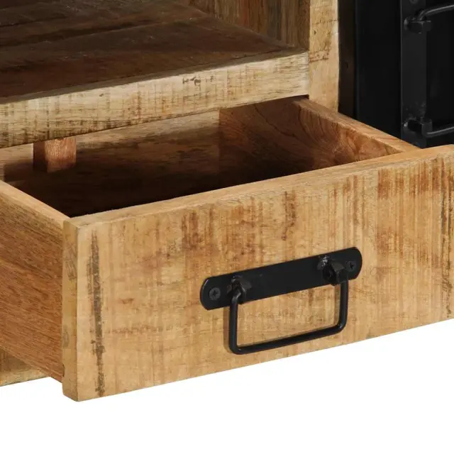 Ta lesena TV omarica z veliko prostora za shranjevanje je praktičen in privlačen dodatek za vašo dnevno sobo ali spalnico. Robusten in stabilen material: Zaradi svoje izjemne trpežnosti in trdnosti je robusten mangov les, trden tropski les, zelo priljubljen za izdelavo pohištva. Zaradi čudovitih vzorcev lesa se vsak kos pohištva nekoliko razlikuje od ostalih.Veliko prostora za shranjevanje: Ta televizijska omarica ponuja veliko prostora za shranjevanje revij, knjig, DVD-jev in večpredstavnostnih naprav, ki so dobro organizirani in dosegljivi.Kovinski ročaji: Ta medijska omarica je opremljena s kovinskimi ročaji za lažji dostop in stilski industrijski slog.Praktično oblikovanje: Na hrbtni strani televizijske omarice so luknje, namenjene priročnemu vodenju kablov elektronskih naprav.Stabilna in trpežna namizna plošča: Stabilna mizna plošča je idealna za postavitev televizorja in stereo sistema ali okrasnih predmetov, kot so vaze ali lončene rastline.Barva: Črna in rjavaMaterial: Trden robusten mangov les, železoDimenzije: 100 x 30 x 35 cm (d x š x v)Z 2 vrati, 1 polico in 1 predalomPotrebno sestavljanje: Da 4013593