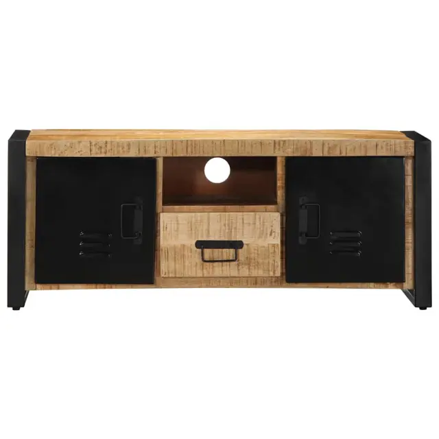 Ta lesena TV omarica z veliko prostora za shranjevanje je praktičen in privlačen dodatek za vašo dnevno sobo ali spalnico. Robusten in stabilen material: Zaradi svoje izjemne trpežnosti in trdnosti je robusten mangov les, trden tropski les, zelo priljubljen za izdelavo pohištva. Zaradi čudovitih vzorcev lesa se vsak kos pohištva nekoliko razlikuje od ostalih.Veliko prostora za shranjevanje: Ta televizijska omarica ponuja veliko prostora za shranjevanje revij, knjig, DVD-jev in večpredstavnostnih naprav, ki so dobro organizirani in dosegljivi.Kovinski ročaji: Ta medijska omarica je opremljena s kovinskimi ročaji za lažji dostop in stilski industrijski slog.Praktično oblikovanje: Na hrbtni strani televizijske omarice so luknje, namenjene priročnemu vodenju kablov elektronskih naprav.Stabilna in trpežna namizna plošča: Stabilna mizna plošča je idealna za postavitev televizorja in stereo sistema ali okrasnih predmetov, kot so vaze ali lončene rastline.Barva: Črna in rjavaMaterial: Trden robusten mangov les, železoDimenzije: 100 x 30 x 40 cm (D x Š x V)Z 2 vrati, 1 polico in 1 predalomPotrebno sestavljanje: Da 4013589